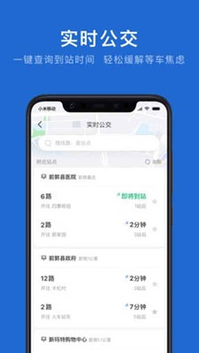 1. 实时公交信息展示,精确到每一辆车的位置和预计到站时间。
